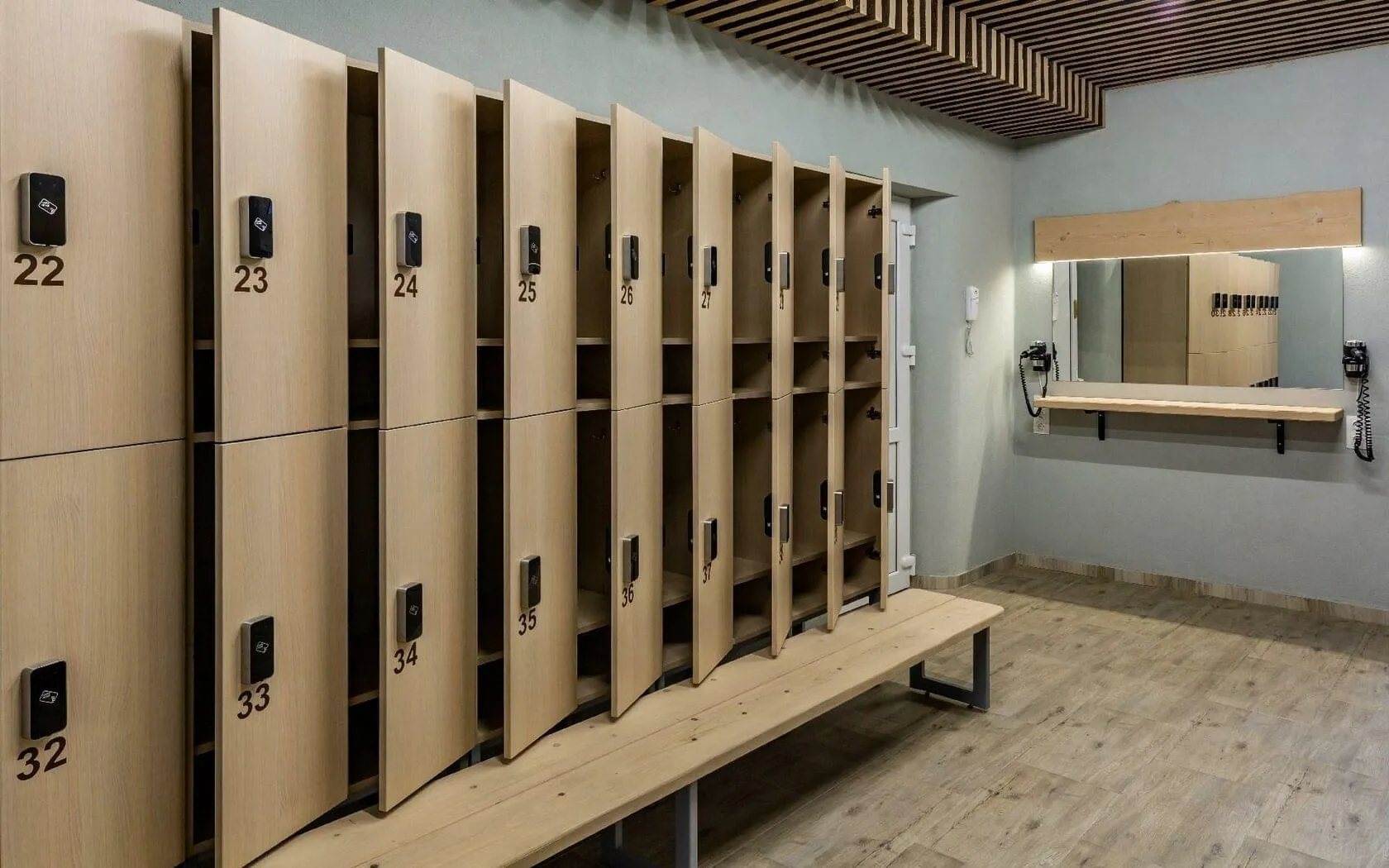 • مواد مقاومة للرطوبة في غرف تغيير الملابس