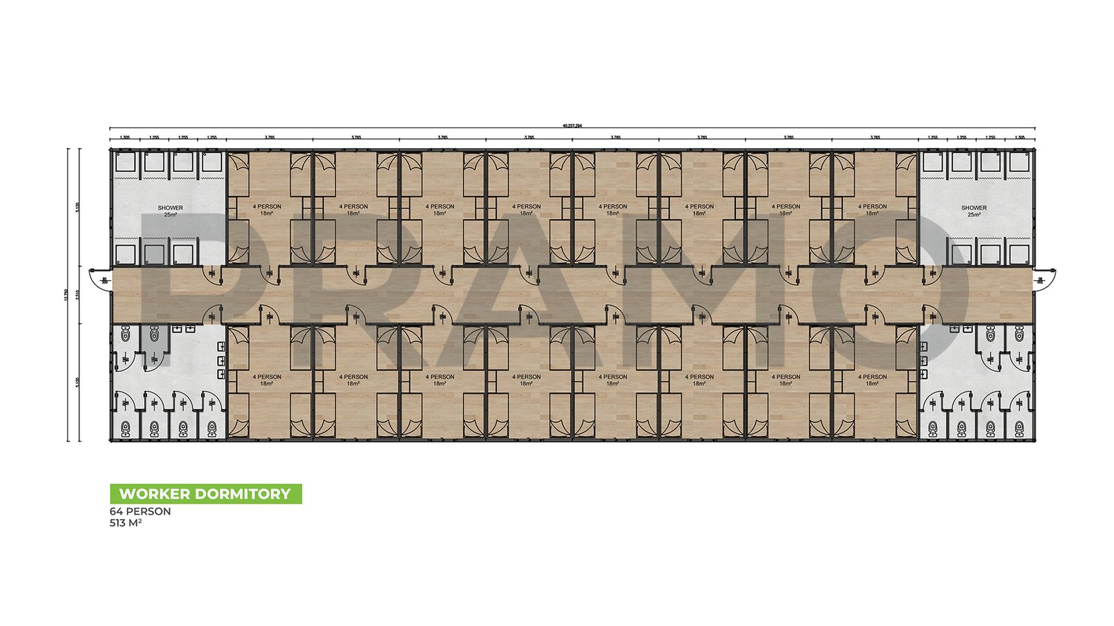 سكن عمال بمساحة 513 متر مربع يتسع لـ 64 شخصًا