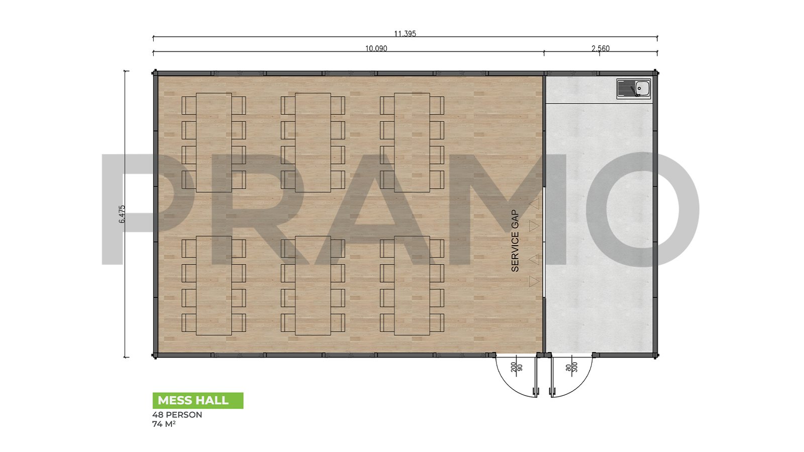 قاعة طعام مسبقة الصنع بمساحة 74 متر مربع