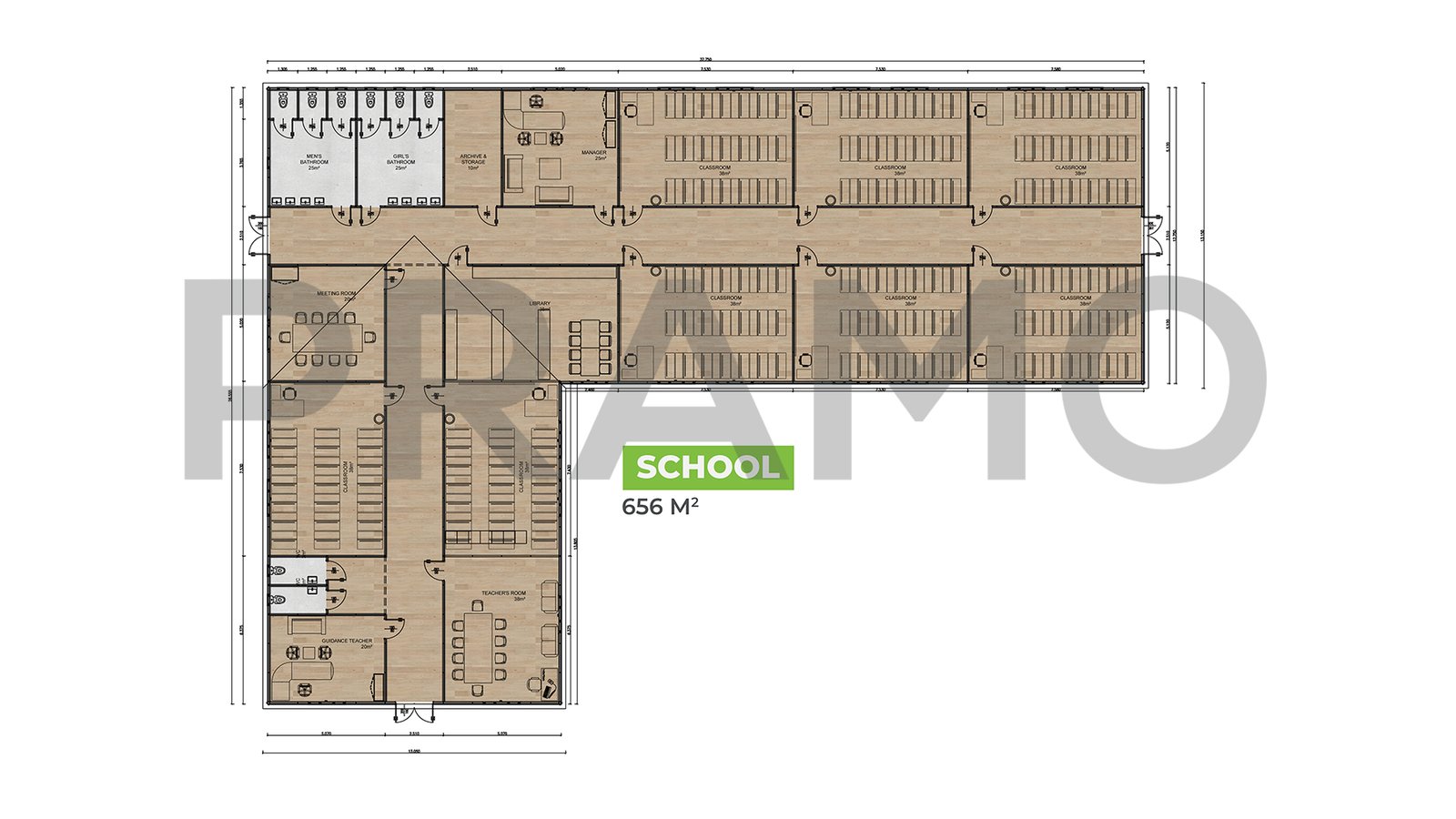 مباني مدرسية جاهزة بمساحة 656 متر مربع