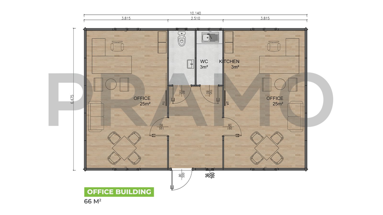 3. مبنى مكاتب مكون من طابقين بمساحة 340 مترًا مربعًا