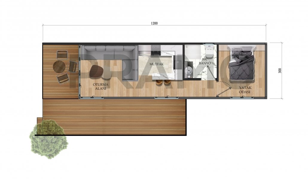 وحدة سكنية من طابق واحد بمساحة 36 متر مربع