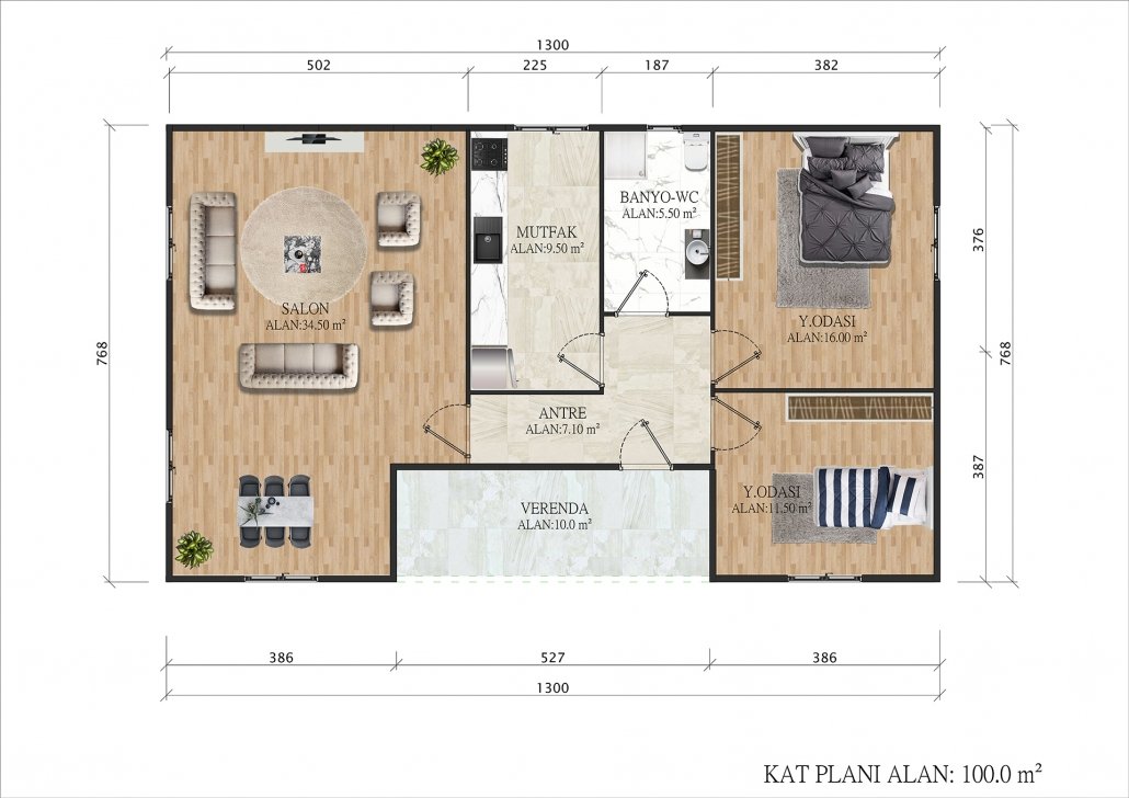 100 متر مربع من المساكن الجاهزة المكونة من طابق واحد