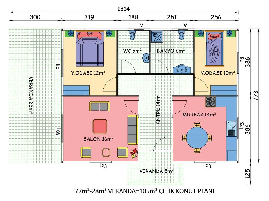 105 متر مربع من المساكن الفولاذية المكونة من طابق واحد