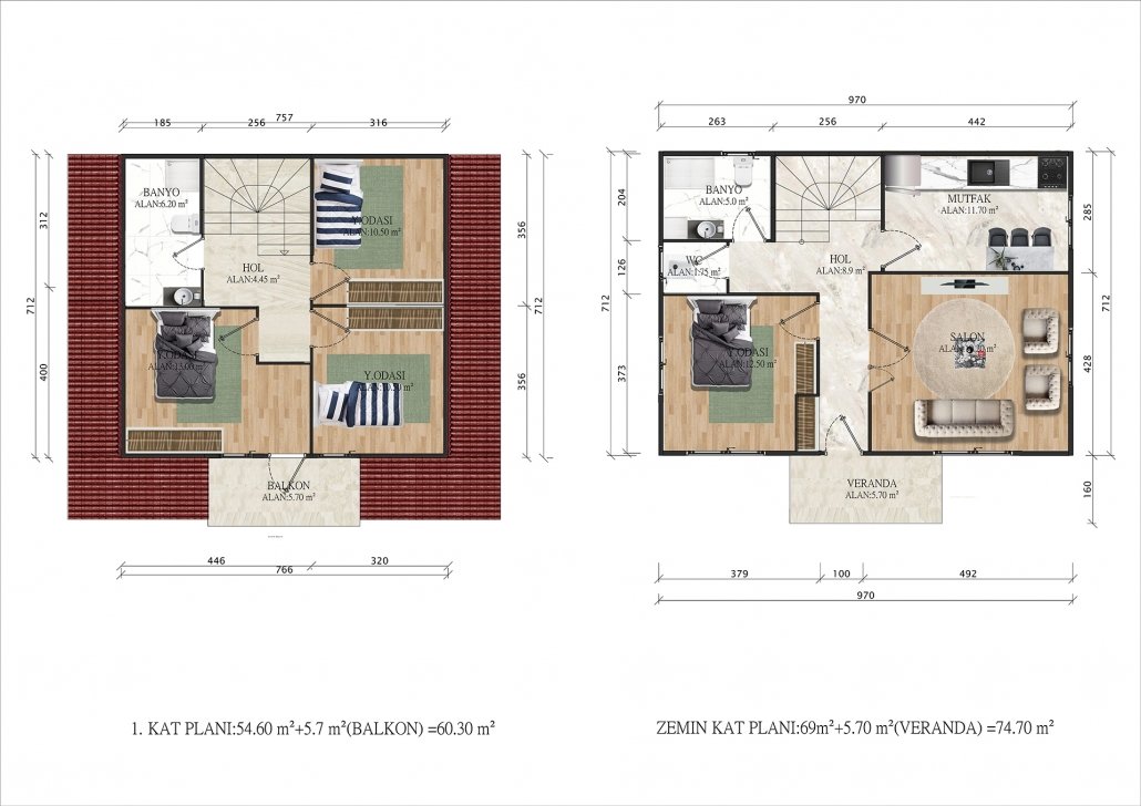 135 متر مربع من المساكن الجاهزة المكونة من طابقين