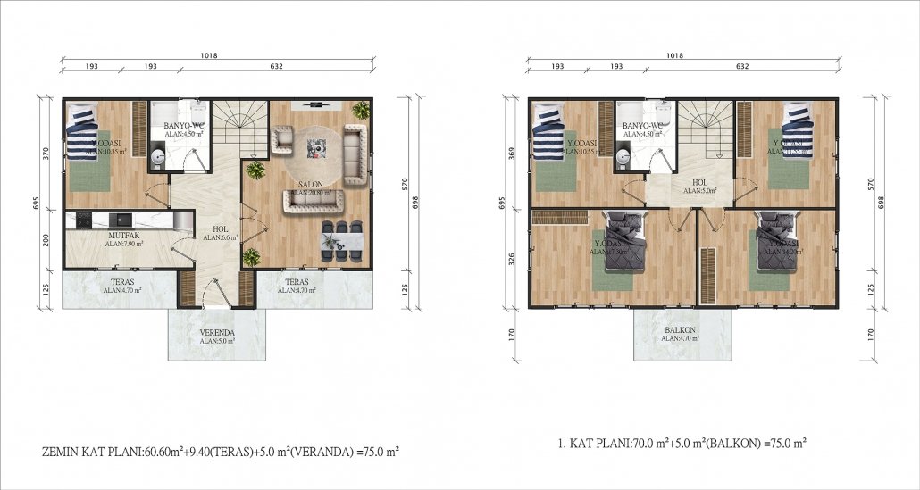150 متر مربع من المساكن الجاهزة المكونة من طابقين