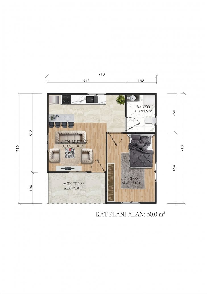 50 متر مربع من المساكن الجاهزة المكونة من طابق واحد