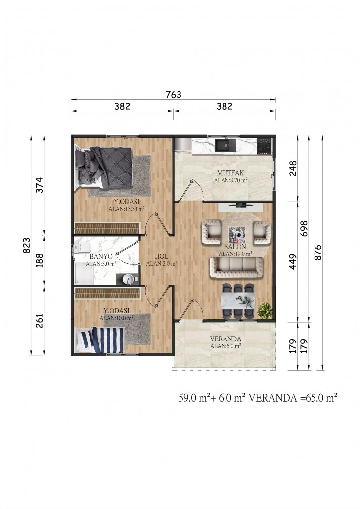 65 متر مربع من المساكن الجاهزة المكونة من طابق واحد