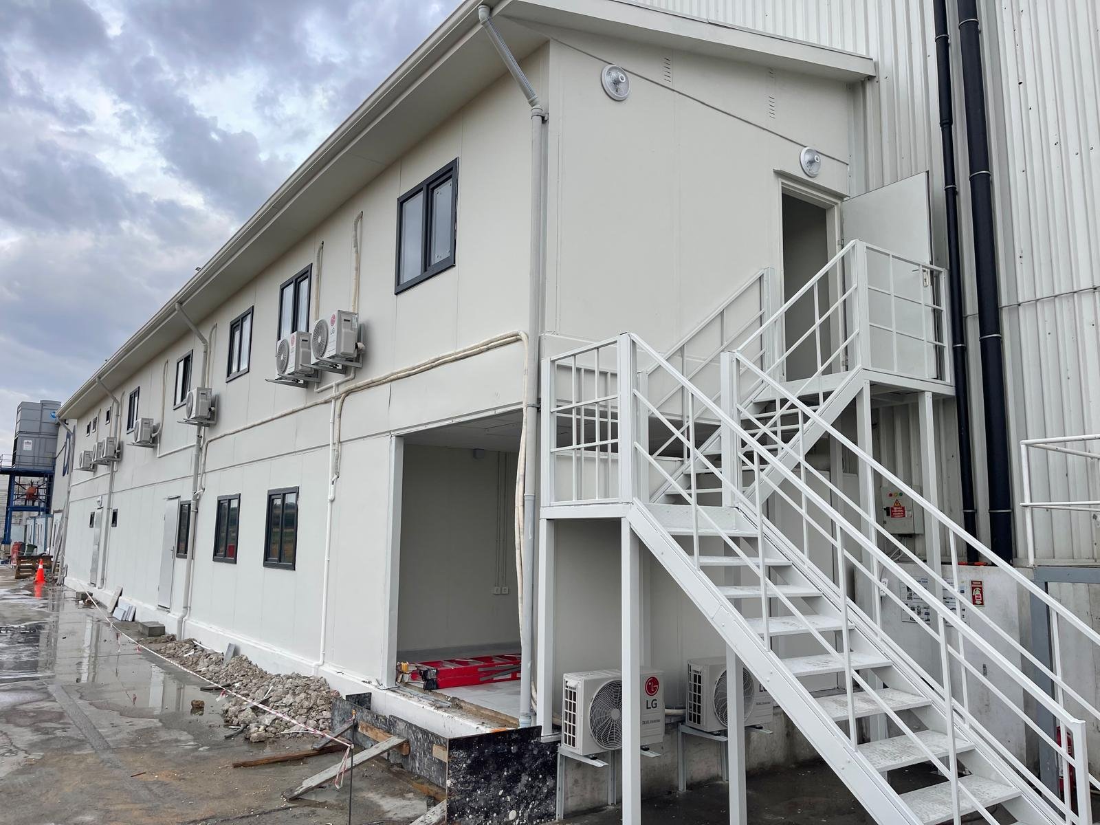 تم الانتهاء من تشييد مباني المكاتب الإدارية والكافيتريا الجاهزة، بمساحة إجمالية تبلغ 250 مترًا مربعًا، لمصنع دانون في تكيرداغ بنظام تسليم المفتاح في غضون 30 يومًا. تهدف هذه الهياكل، التي تم تنفيذها بأسلوب تصميمي وظيفي وجمالي يتناسب مع احتياجات المستخدمين، إلى زيادة الكفاءة التشغيلية في المصنع.